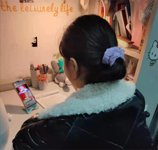 (图为:我校青年学生自觉通过手机学习党的十九届五中全会精神云团课。)