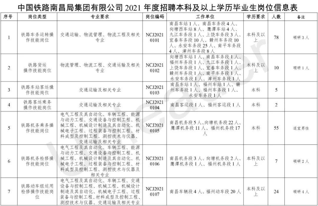 点击☞重磅!不限户籍招3007人!南昌铁路局集团招聘公告发布!报名截至2021年3月31日!