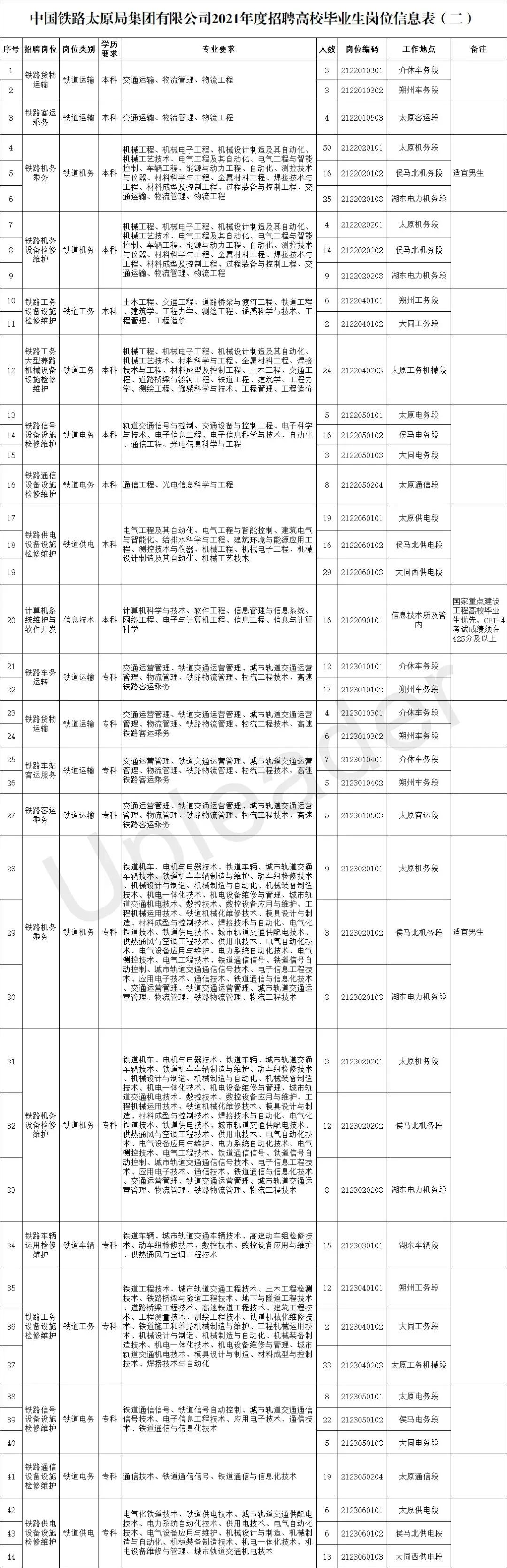 点击☞央企新招507人,专科即可,不限户籍!中国铁路太原局集团有限公司2021年招聘高校毕业生公告(二),报名截至1月31日!