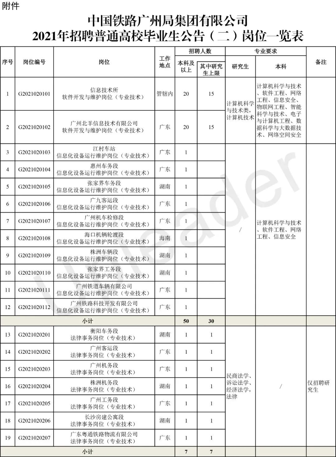 中国铁路广州局集团有限公司2021年招聘普通高校毕业生公告(二)