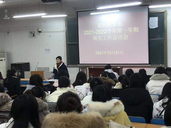 2021年12月31日,基础教学部召开2021-2022学年第一学期期末工作总结会,本次会议基础教学部全体教师参加。会议上基础教学部主任陈红丽总结了本学期以来基础教学部的整体工作,表扬了基础教学部师生取得的成绩,同时也指出了一些不足之处和需要改进的地方。 完成总结工作后,陈主任还专门针对今后的教育...... 阅读(1663)