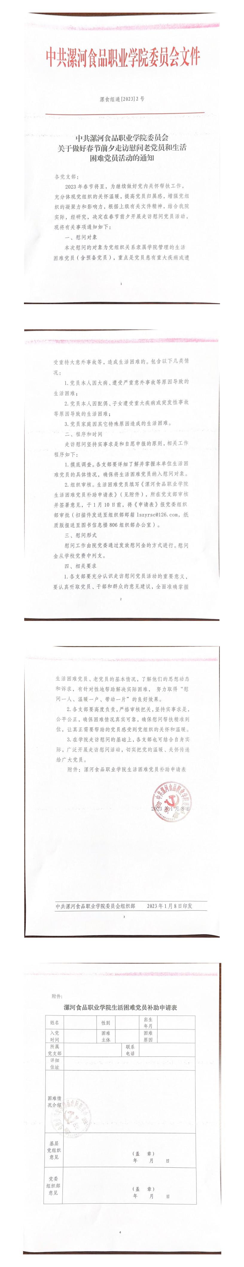2023/01/09中共漯河食品职业学院委员会关于做好春节前夕走访慰问老党员和生活困难党员活动的通知