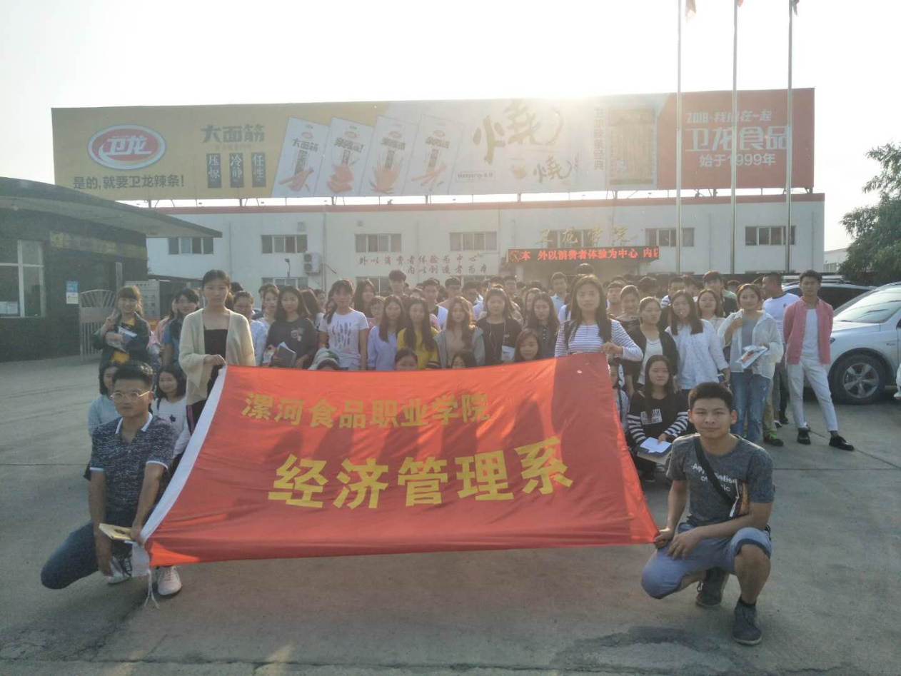 为了实施食品贮运与营销专业、市场营销专业和工商管理专业工学结合团队项目任务化实践培养模式,完成制定《卫龙食品公司市场营销方案》和《卫龙食品公司企业管理方案》的实训项目,在组建团队、设计调查问题的基础上,5月7日下午,经管系张晓丽主任、辅导员刘泽宁、教师李凤艳、刘锦云带领三个专业的学生赴漯河平平食品有限公司进行见习、调研。