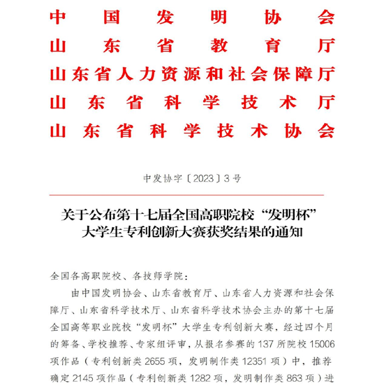 2023/03/16【喜报】我系在第十七届全国高等职业院校“发明杯”大学生专利创新大赛中喜获佳绩