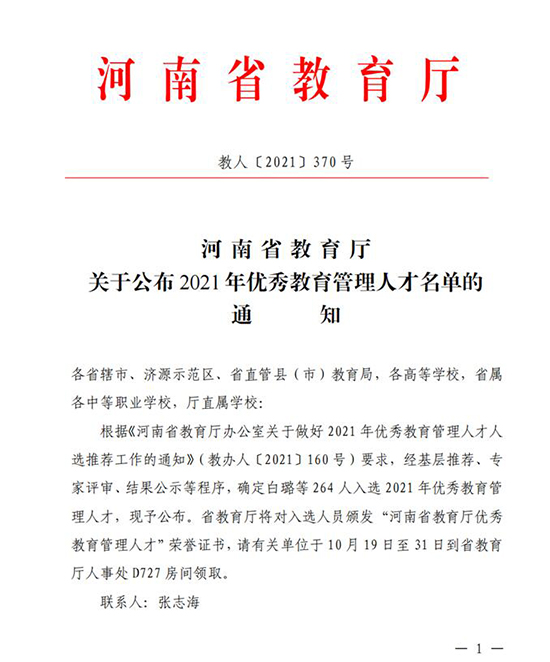 2021/10/23经济管理系曹源主任入选2021年河南省教育厅优秀教育管理人才