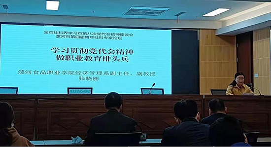 10月28日上午,全市社科界学习市第八次党代会精神座谈会暨漯河市第四届青年社科专家论坛在漯河市博物馆四楼会议室举行。我系副主任、副教授张晓丽参加了此次会议并作发言。 9月26日,中国共产党漯河市第八次代表大会开幕。刘尚进书记向大会作了题为《奋勇争先担使命,更加出彩当前锋,为全面推进现代化漯河建...... 阅读(1293)