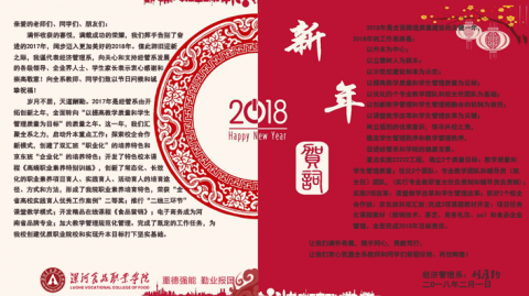 满怀收获的喜悦,满载成功的荣耀,我们挥手告别了奋进的2017年,阔步迈入更加美好的2018年。值此辞旧迎新之际,我谨代表经济管理系,向关心和支持经管系发展的各级领导、企业界... 阅读(618)