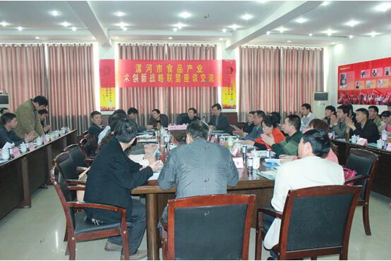 为认真贯彻落实漯河市委书记马正跃在我院调研时关于加快食品研发步伐等相关指示精神,同时进一步提升联盟食品企业的技术创新能力,加强企业间技术交流,推动食品产业技术进步,促进企业大力开展技术创新、新技术应用,3月25日下午,漯河市食品产业技术创新战略联盟企业座谈交流会在我校行政综合楼三楼第二会议室召开。