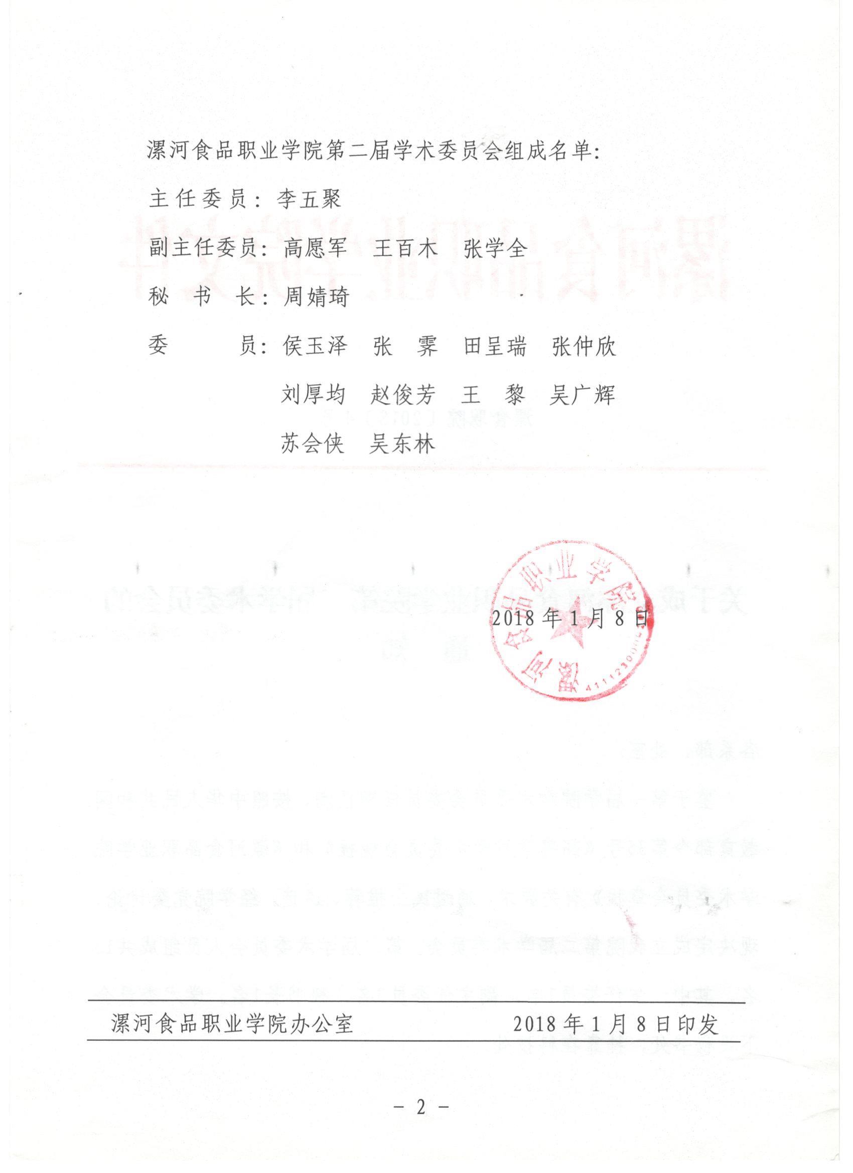 关于成立漯河食品职业学院第二届学术委员会的通知
