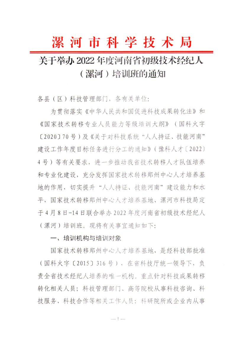关于举办2022年度河南省初级技术经济人(漯河)培训班的通知
