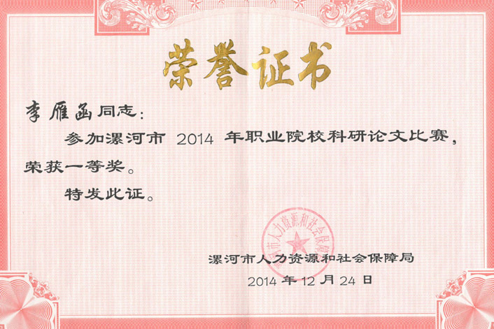职业院校科研论文一等奖2014-李雁函