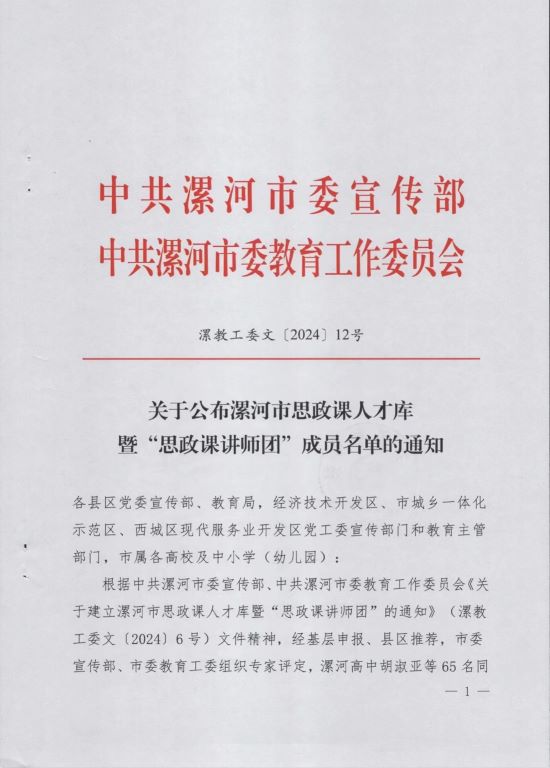 2024/05/10马克思主义学院王芳芳老师入选漯河市思政课人才库暨“思政课教师团”成员