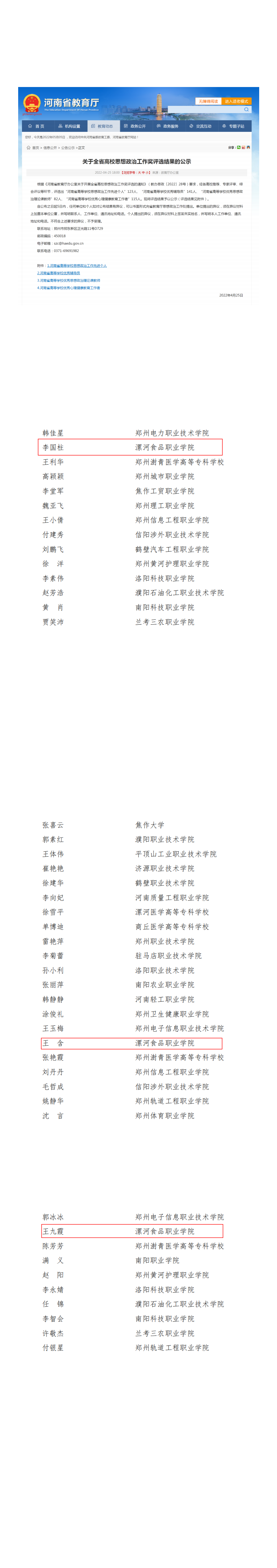 2022/04/27喜报:漯河食品职业学院荣获省教育厅思想政治工作三项荣誉
