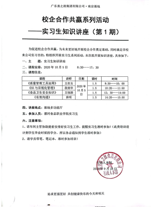 2020/10/30南京喜之郎校企合作共赢系列活动----实习生知识讲座