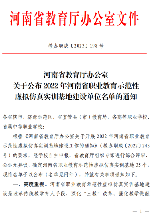 2023/06/07食品加工虚拟仿真实训基地获批河南省职业教育示范性虚拟仿真实训基地