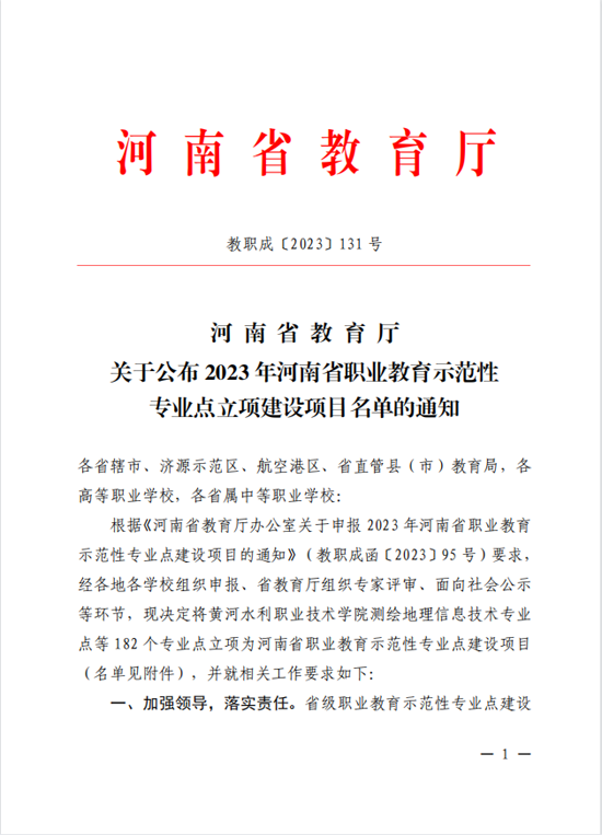 近日,河南省教育厅发布了《关于公布 2023 年河南省职...... 阅读(1461)