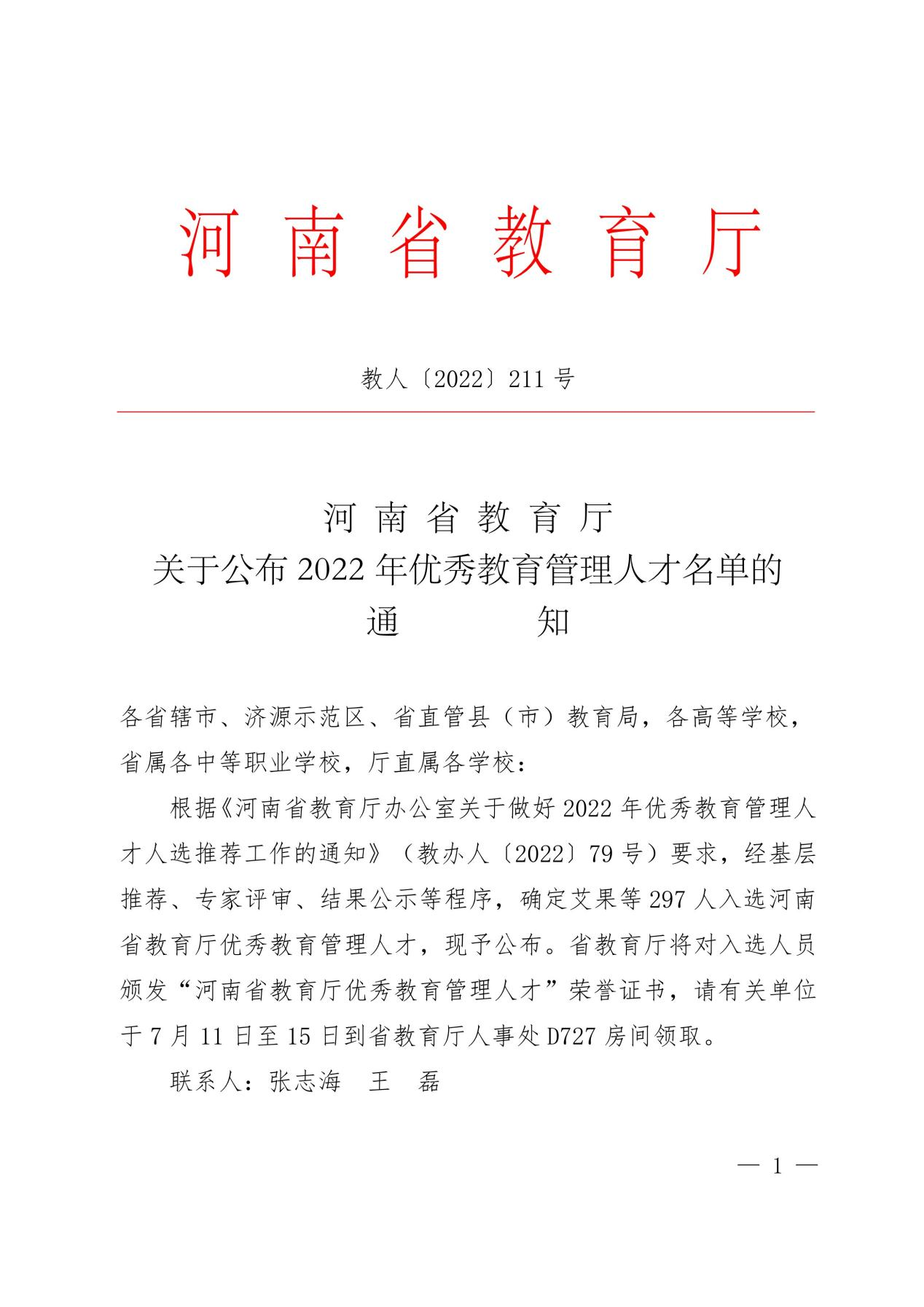 6月26日,河南省教育厅下发公布2022年优秀教育管理人...... 阅读(1404)