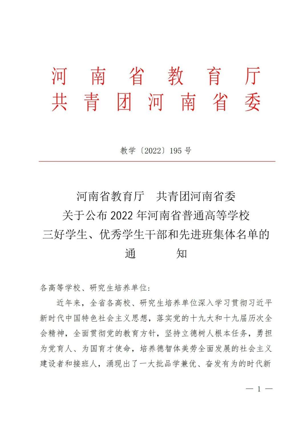 2022/08/08喜报:我院食品工程系荣获河南省2022年度“两创两争”活动先进集体和先进个人等荣誉