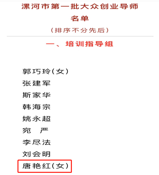 2021/12/04唐艳红主任被聘任为漯河市首批大众创业导师团导师