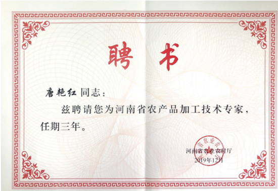 我系两名教师被河南省农业农村厅聘为 河南省农产加工技术专家
