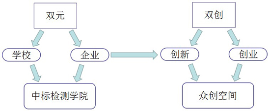 “双元双创”即针对某一岗位(群)的任职要求,“双元”(学院元和企业元)共同制订人才培养方案,确定课程体系,工学交替组织教学,特别注重针对岗位要求全程进行精雕细琢,最终使学生不仅能较出色地胜任岗位(群),且知识层次、职业素养以及职业能力、创业能力、创新能力均获得全面提升。努力寻求企业“元”和学校“元”共同参与培养人才的解决方案,以“创新创业”为导向,强调学生的创业能力与创新能力培养,抓住岗位需求,学生创业才有方向,培养方向才有目标,工学结合才有基础,能工巧匠才有资源。