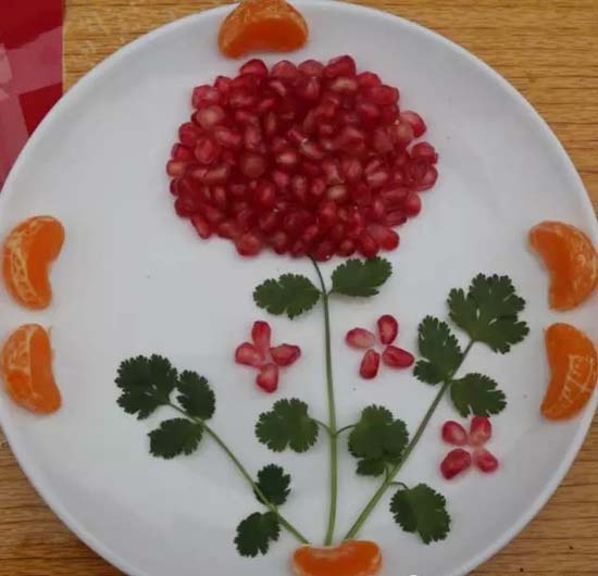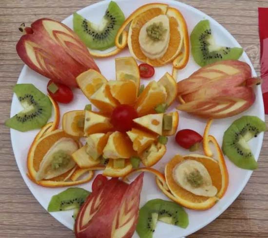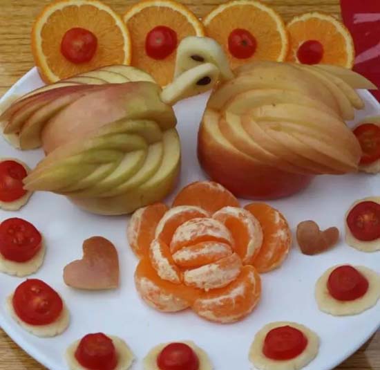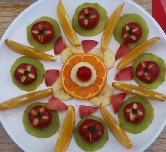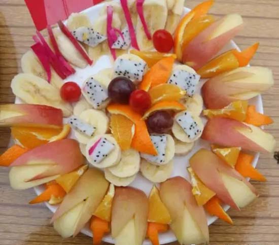 活动中,选手们充分发挥自己的想象力,制作了各种有创意的水果拼盘,让在场的观众大饱眼福。赛场上果香四溢,色彩鲜艳的水果在同学们的巧手下变成富有创意的艺术品。各式水果拼盘从造型、构思意念到名称都极尽心思,充分体现同学们准备的精心及创意。