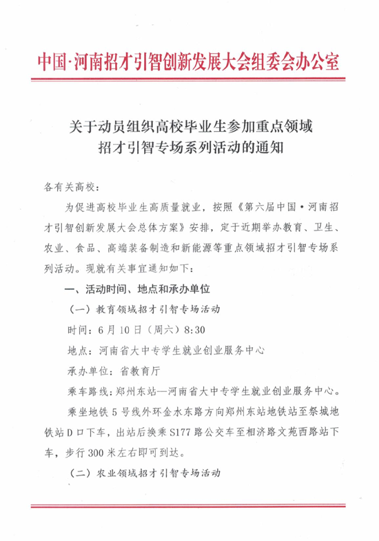 2023/06/09关于动员组织高校毕业生参加重点领域招才引智专场系列活动的通知
