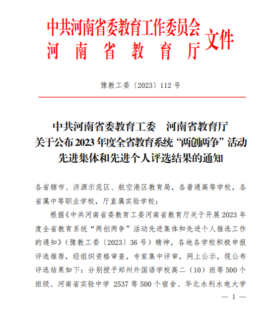 近日,中共河南省委教育工委河南省教育厅下发《关于公布2023 年度全省教育系统“两创两争”活动先进集体和先进个人评选结果的通知》(豫教工委〔2023〕112 号),经过申报评选推荐,组织资格审查,专家集中评审,网上公示等环节,食品机械系 2021级机电一体化技术2班马子晨荣获文明学生称号。... 阅读(1327)