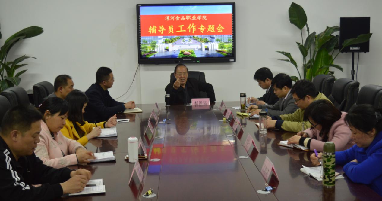 为进一步明确新时期辅导员工作思路,切实加强和改进学生思想政治教育工作,提高辅导员做好学生思想教育和日常管理工作的能力,更好的开展我院学生工作促进辅导员队伍的建设,我院辅导员工作专题会于2017年3月28日下午在本科校区会议室召开,学院执行院长赵国运出席并作讲话。会议由学院党委学工部部长、学生处处长游江涛主持,各系部学生工作领导和辅导员参加会议。