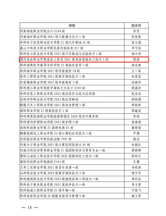日前,河南省教育厅办公室下发《关于公布 2023 年河南省职业教育和继续教育课程思政示范项目名单的通知》(教办职成〔2023〕197 号)。经各单位推荐申报、资格审查、专家评审、结果公示等环节,确定2023 年职业教育和继续教育课程思政示范课程 272 门。其中,由漯河食品职业学院申报,王黎负责,团队成员孙继红、刘彩红......