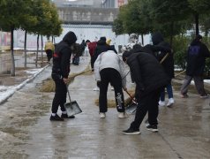 1月 7 日 清晨 , 大学覆盖了整个校园,为了保障我院师生出行安全,学生处长侯保清、院团委副书记于金辉、学生处陈俊老师 带领 近百 名 学生干部开展了校园积雪清扫 活动。 扫雪面...