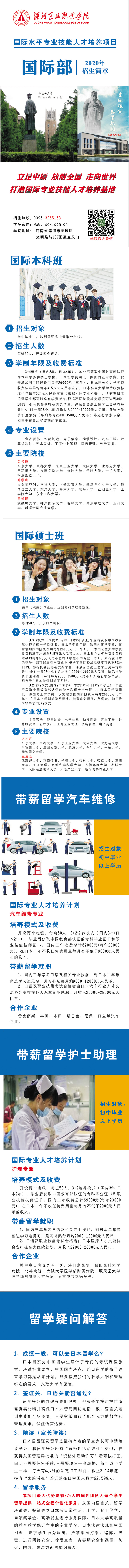 漯河食品职业学院国际部2020年招生简章