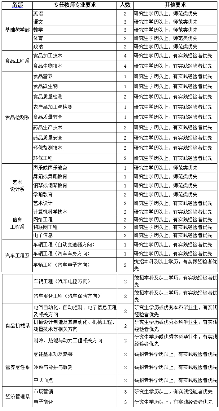 (三)本、硕专业一致或相近,具有高校教师资格证、中级以上教育系列职称和中级职业技能资格证书的优先录用。