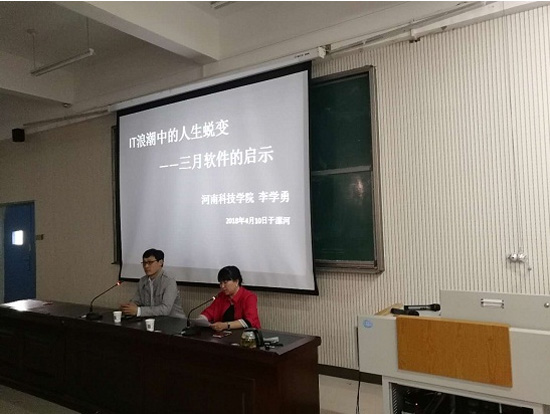 信息工程系的百余名师生参加了报告会,在场的老师就“三月软件”的人才培养模式和教学方式等与李教授进行了热烈而深入的交流和讨论,李教授对师生们所提问题一一解答,并对系部组建专业工作室提出了宝贵的建议。报告会内容丰富,气氛活跃。听报告的师生纷纷表示,深受启发,对我院教学、教研和教师专业化建设很有指导意义。