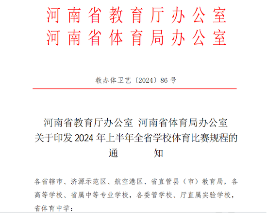 为贯彻省委办公厅、省政府办公厅《关于全面加强和改进新时代学校体育工作的实施方案》精神,健全学校体育竞赛体系,发挥学校体育竞赛综合育人功能,根据《2024 年全省... 阅读(1022)