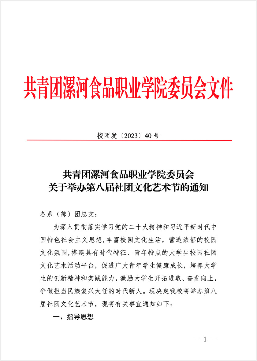 2023/10/26漯河食品职业学院委员会 关于举办第八届社团文化艺术节的通知
