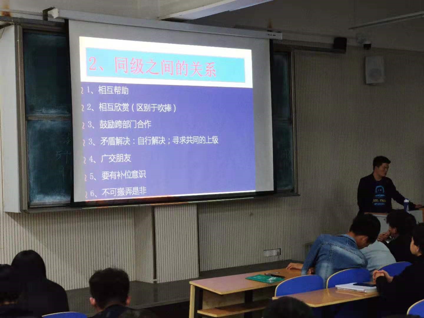 最后,李国柱老师就公文写作进行了培训。他围绕“新闻稿的规范格式”“新闻稿的写作步骤”等一系列内容展开了分享,会议达到预期效果,使学生干部们受益匪浅。