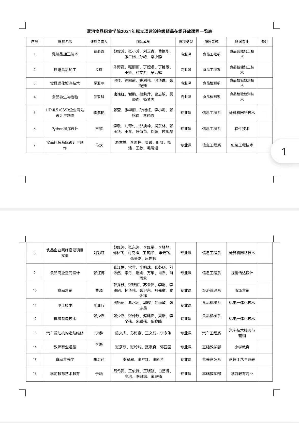 11月1日,学院公布了《2021年拟立项建设院级精品在线开放课程一览表》,信息工程系的《HTML5+CSS3企业网站设计与制作》、《Python程序设计》和《食品企业网络搭建项目实训》三个课程均获立项!... 阅读(1505)