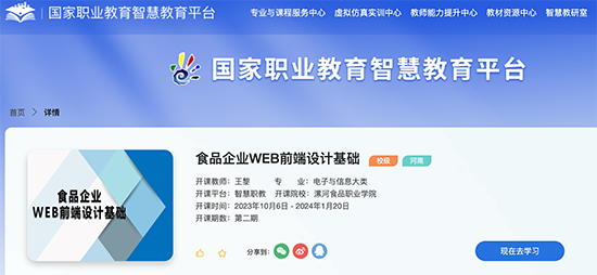 信息工程系《食品企业WEB前端设计基础》(课程负责人:王黎)课程成功入选,开课平台为国家职业教育智慧教育平台。这是该系首次获批国家在线精品课程,实现了教学改革与... 阅读(1403)