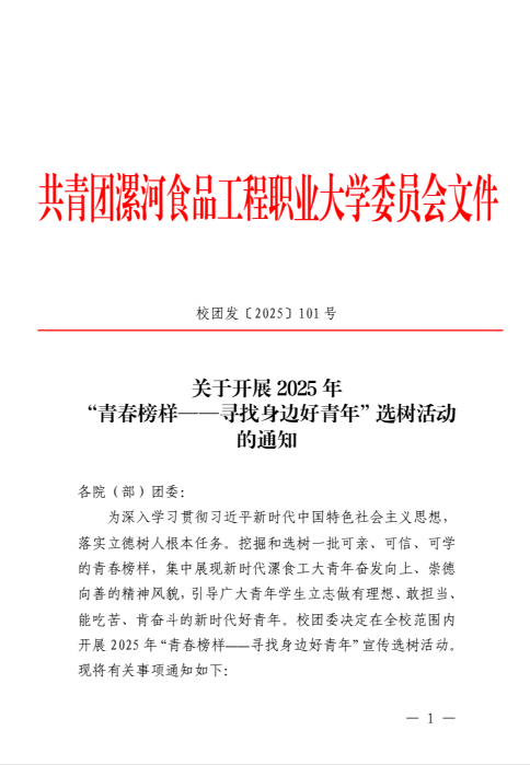 2025/11/03校团发〔2025〕101号关于开展2025 年“青春榜样——寻找身边好青年”选树活动的通知