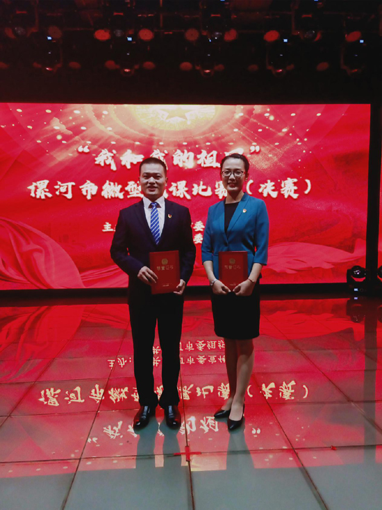 代表漯河市委教育工委参赛的我院教师郑超锋,以 《今天,我们如何爱国》为题展示了精彩的微党课,并获得一等奖。漯河市委组织部副部长何志莹为郑超锋颁发了一等奖获奖证书。