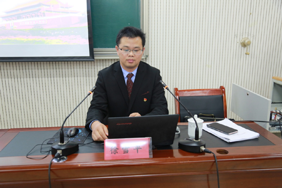 徐雪平副教授以《坚定制度自信,汇聚行动力量,自觉维护制度权威,争做制度执行表率》为题,从十九届四中全会的背景介绍、重大意义、主要内容和如何做制度坚决的捍卫者和坚决的执行者等四个方面作了一场生动、透彻的报告。