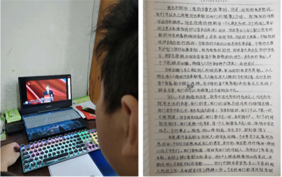 19级信息工程系刘楠同学看完直播后激动地说:“一个有希望的民族不能没有英雄,一个有前途的国家不能没有先锋。身为一名新时代的大学生,今天还能安逸的坐在家中听课,我们应该明白身后是谁在为我们挡子弹;我们深深的知道,现如今生活的这片土地下曾抛洒了多少先烈的热血。当然,我们更应该怀揣一颗感恩的心,去回报他们。”