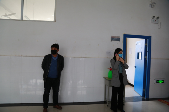 第二个场景的演练是上课期间学生突发干咳、胸闷、温高于37.3摄氏度时模拟应急处置。演练在六号楼一楼教学区展开,上课前由专门人员对上课教室进行全面消杀,确保上课场所的安全与卫生。学生进入教室之前,任课老师逐一对自觉间隔1.5米在教室门外排队的学生进行体温测量,体温在37.3以下的学生才能进入教室按照前后左右间隔1.5米的座次就坐。正式讲课前,任课老师提示所有学生上课期间不准摘下口罩及出现干咳、胸闷等身体异常情况立即报告老师。上课期间一名学生出现严重的干咳,任课老师立即停止上课并将其带至教室门外进行三次测温,测温结果均为38.2摄氏度。任课老师立即向六号楼一楼网格长报告并请求处置。网格长随即向学院疫情防控办公室报告并请求处置。疫情防控办公室随即通知学院医务人员在最短时间内到达该教室门口并将该发热学生带至学院隔离室,再次测温确认体温为38.2摄氏度并对其情况进行登记后,按照疫情防控办公室领导的指示由医务人员陪同,由发热送诊专用车将其送至市疫控办指定医院发热门诊。