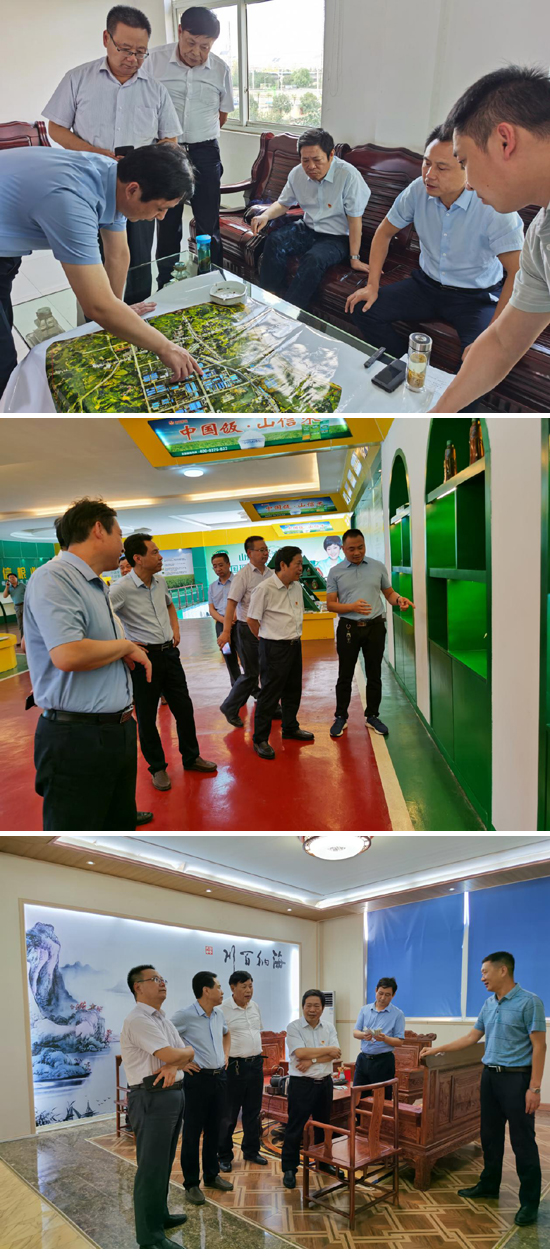 詹跃勇一行首先来到商城县产业集聚区,听取了县产业集聚区空间规划、产业发展定位、企业分布情况的介绍,随后实地查看商城县食品产业园规划用地情况,并参观了山信集团和瑞禾食品等企业。