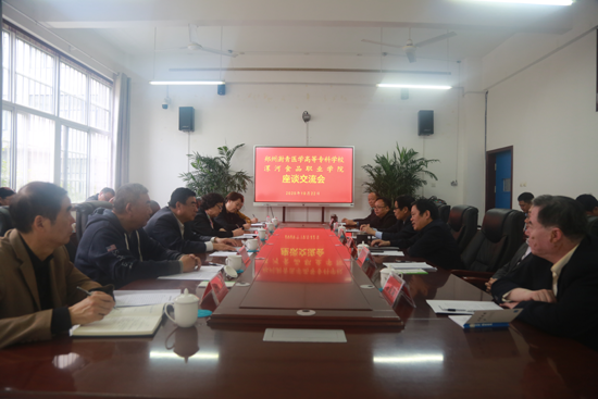 在交流会上,詹跃勇书记对王左生董事长一行的到来表示热烈的欢迎,随后介绍了我院的基本情况、办学模式、办学特色、专业设置及服务当地经济社会的情况,表示愿向郑州澍青医学高等专科学校进行更广层面、更深层次的学习、交流、探讨与合作。王左生董事长介绍了郑州澍青医学高等专科学校的基本情况,表示愿与漯河食品职业学院一道相互学习、精诚合作、携手共进,积极推动两院教育事业的进一步发展,进一步提高办学质量及服务经济社会的能力。