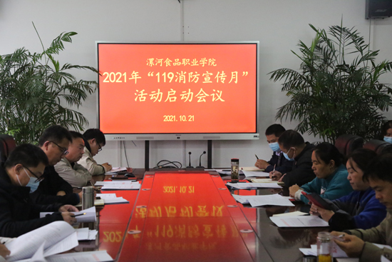 主管院领导在会上宣读了“漯河食品职业学院2021年119消防宣传月活动方案”,对消防宣传教育、应急演练和安全隐患排查整治工作进行了具体安排。