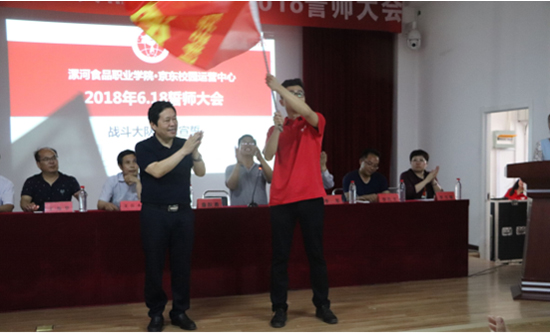 为迎接“京东6.18全球年中购物节”,6月8日下午,漯河食品职业学院电商学院在北校区大学生创业中心举行“迎战6.18誓师大会”。参加誓师大会的有学院党委书记詹跃勇、大学生创新创业中心主任于伟华、经济管理系主任刘厚钧、京东电商学院院长霍文政、京东电商学院书记李军、华文商道总裁兼恒成电商学院院长李孔文、中国电商协会合作单位河北沙河市职教中心招生就业处处长李书敏、京东电商学院副院长卜志军、经济管理系副主任张晓丽和丁超君、京东集团运营中心经理聂广康及京东电商学院全体师生。